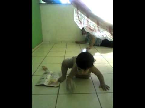 O Heitor hoje começou efetivamente a andar. Estavámos na minha mãe fomos para area da casa e ele simplesmente ganhou confiança e foi...