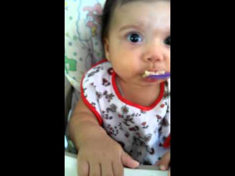 Comendo a primeira papinha de banana